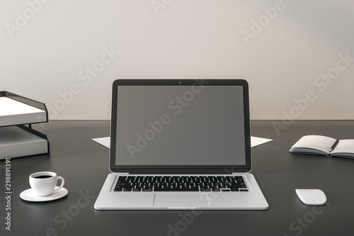 desktop, designer, creative, laptop, mobile, indoor, cyberspace, notebook, keyboard, background, office, wall, grey, screen, nobody, modern, work, workspace, business, illustration, render, rendering, three-dimensional, closeup, supply, cup, hot drink, monitor, mock, up, copy space, empty, blank, frame, space, desk, top, computer, table, display, copy, technology, tech, device, electronic, template, pattern, workplace