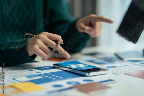 Creative digital development agency. developer brainstorming on their project with laptop, smartphone and digital tablet.