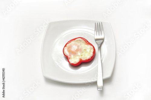 creative, food, idea, design, egg, into, capsicum, slice, red, eat, pepper, fork