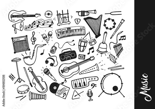 doodle, drawing, scribble, creative, element, vector, illustration, graphic, isolated, clip art, decoration, event, greeting, card, invitation, postcard, ornament, vignetting, sticker, line art, ink, decorative, celebration, festive, drawn, chalk, set, cute, art, hand, pen, collection, vintage, retro, pattern, party, book, education, children, music, sound, harmony, harp, guitar, drum, audio, microphone, band