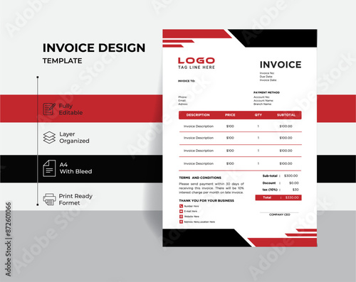 Creative Invoice Template Vector.