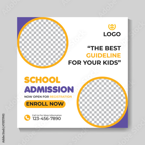 school, admission, social, media, post, design, template, back to school, banner, children, kindergarten, online, education, college, study, class, student, layout, learn, poster, academic, back, junior, learning, primary, advertisement, open, preschool, high, digital, web, enrollment, square, creative, modern
