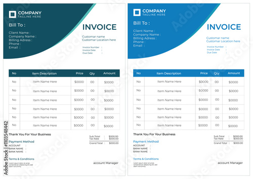 Creative, modern, unique, clean, and professional corporate company business letterhead and invoice template design