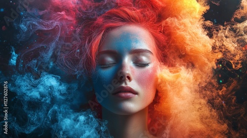 portrait, creative, colourful, smoke, make-up, surreal, woman, artistic, vibrant, emotional, aesthetic, modern, unique, bold, composition, dreamy, striking, abstract, beauty, inspiration, detail, texture, mysterious, aglow, innovative, contemporary, dramatic, fantasy, moody, sharpened, glamour, powerful, aethereal, dynamic
