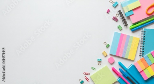 stationery, supply, office, background, workspace, organisation, memo, planning, writing, study, note, learning, journal, rainbow, clip, student, school, pen, neat, project, border, eraser, planner, education, order, binder, workplace, marker, idea, tool, post, book, layout, thing, drawing, work, item, blank, back, desk, notebook, paper, diary, notepad, vibrant, new, stick, home, business