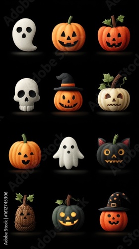 Creatively designed Halloween decorations featuring spooky pumpkins, ghosts, and skulls