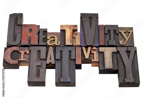 creativity, imagination, invention, letterpress, typography, word, abstract, antique, black, collage, font, ingenuity, isolated on white, red, type, vintage, wood