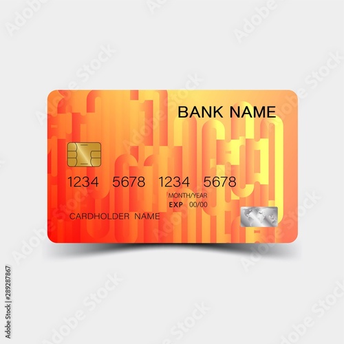 Credit card. With colorful elements desing. And inspiration from abstract. On white background. Glossy plastic style.
