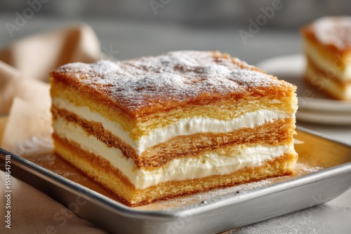 Cremeschnitte Vanilleschnitte Schichtkuchen mit Creme Blätterteigschnitte Vanillecremeschnitte Dessertkuchen Sahneschnitte Kuchen mit Puderzucker Cremeschnitten Rezept Feiner Cremekuchen Backidee
