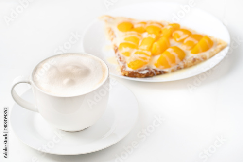 goodie, fruit, breakfast, snack, strawberry, chocolate, milkmaid, peach, jam, jello, coffee, banana, france, coconut, cocoa, enjoyment, choice, happiness, isolated, white, food, diet, pie, sweet, pineapple, famine