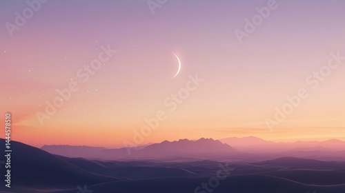 moon, crescent, sunset, sunrise, mountain, range, hill, sky, cloud, dusk, dawn, pastel, colours, landscape, nature, scenic, view, horizon, night, day, star, light, serenity, calm, peace, tranquil, atmosphere, beautiful, amazing, dreamy, magical, vibrant, soft, gentle, romantic, mystical, aethereal, huge, wide, travel, journey, exploration