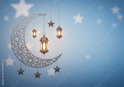 ramadan, moon, lantern, star, islam, eid, decoration, celebration, religious, arabic, muslim, holiday, culture, background, ornament, design, night, light, crescent, symbol, traditional, glowing, spiritual, islamic, festive, art, vintage, sky, blue, religion, with
