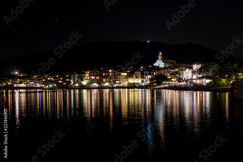 Crespusculo y vista nocturna de Cadaqués, Alt Empordan, Cataluña, Españ