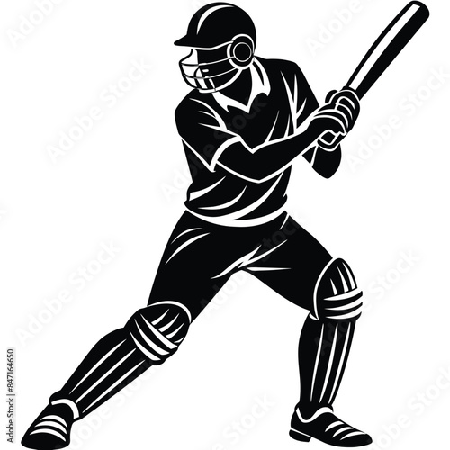 Cricket Batsman Silhouette in Batting Stance with Bat and Helmet - Sport Graphic
