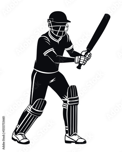Cricket Batsman Swinging for a Shot , black colour vactor