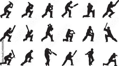 Cricket Players Silhouette icon set, Cricket player silhouettes Collection, Set of cricket players silhouette