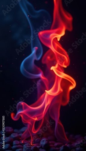 Crimson and azure flames dance against a stark black backdrop , power, background, smolder