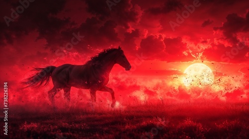 Crimson Gallop: Silhouette of a Horse against a Fiery Sunset