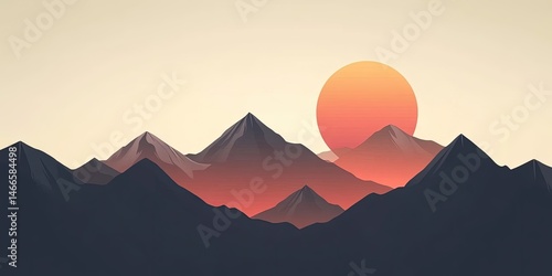 mountain, mountain, landscape, nature, sun, sunrise, sunset, sky, vector, illustration, peak, summit, hill, panorama, background, scenery, view, travel, adventure, polygonal, geometric, design, wallpaper