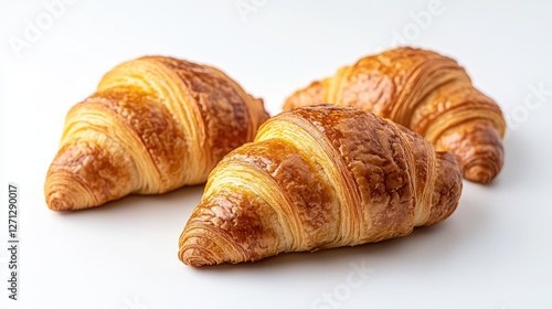 Crisp croissants with golden-brown layers, placed on a clean white background with copy space for branding.
