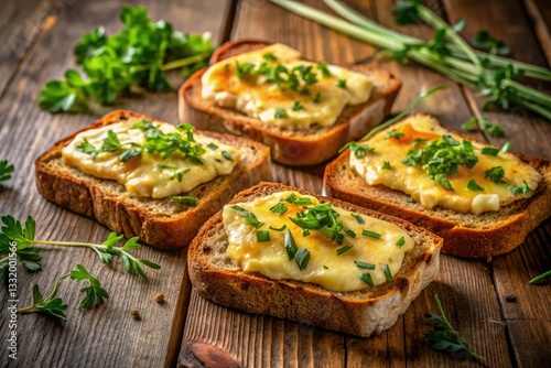 food photography, golden brown, hi-res, photorealistic, snack, breakfast, brunch, lunch, dinner, cheese, herb, garlic, butter, bread, epicure, comfort food, home cooking, tasty, deliciously, appetising, closeup, detail, texture, light, shadow, culinary arts