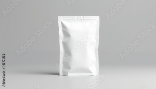 Crisp white sachet mockup on a gray background, modern and minimalist design