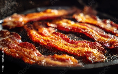 bacon, crispy, strip, fried, cooking, food, breakfast, kitchen, pan, plaster bandage, iron, frying pan, hot, delicious, image, closeup, detail, brown, gold, browned, fat, oil, sizzle, heat, texture, meal, american, receipe, photo, close, up, appetising, deliciously, tasty, dinner, seasoned