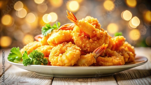 Crispy battered shrimp, beautifully captured on a white background, highlights the textures and flavors, perfect for food enthusiasts seeking exquisite culinary photography.