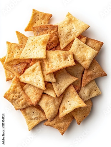 Crispy Bread Chips on White Background for Commercial Food Display, Photorealistic Concept