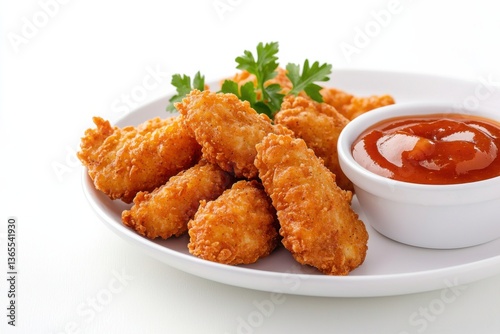 Crispy chicken nuggets delight kitchen food photography clean background close-up culinary treats