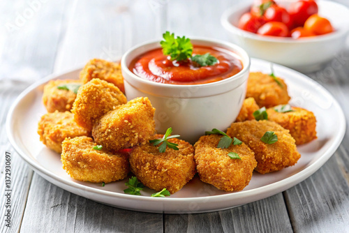 Crispy Chicken Nuggets, Tomato Ketchup, Parsley Garnish, Appetizer Plate