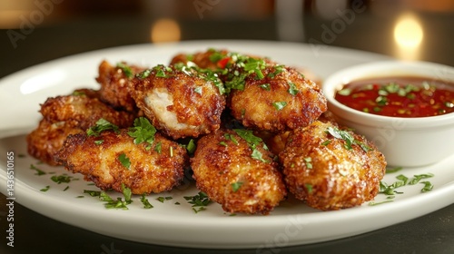 chicken, nugget, crispy, spicey, sauce, dipping, food, dinner, lunch, receipe, easy, tasty, delicious, crunchy, gold, brown, savoury, flavorful, hot, plate, eatery, meal, comfort, finger, eat, deliciously, snack, party, wing, meat, protein, dish, cookery, epicure, homemade, breaded, fried, sesame, chili, garlic, ginger, sweet, lemony, coating