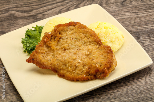 schnitzel, chicken, roasted, meat, meal, fried, food, dinner, cutlet, pork meat, fillet, dish, chop, cooked, plate, lunch, breaded, tasty, veal, delicious, sirloin, steak, fresh, wiener, cookery, german, potato, escalope, crumb, closeup