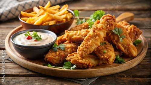 Crispy Chicken Tenders & Fries - Casual Dining Meal Stock Photo