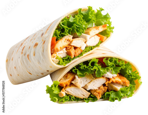 Crispy Chicken Wrap Cut in Half Showing Filling – Transparent Background PNG