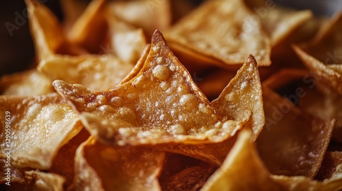 Crispy corn tortilla chips in close-up, creating a textured background. Perfect for photos of food or Mexican cuisine.