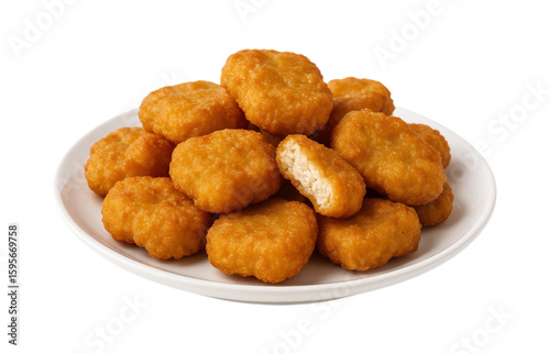 Crispy Golden Chicken Nuggets on Plate, Delicious Breaded Snack or Appetizer for Fast Food Restaurants and Home Meals, Isolated on Transparent and White Background