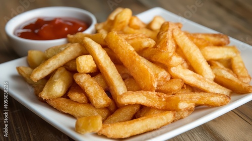 fries, potato, snack, fast food, side dish, ketchup, comfort food, classic, hot, gold, savoury, delicious, meal, eatery, served