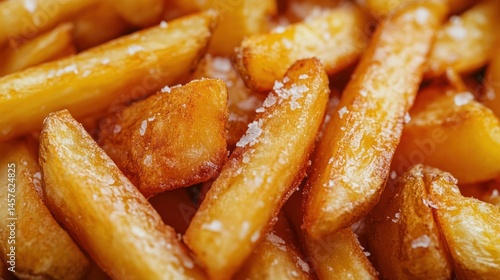Crispy golden potato wedges sprinkled with sea salt, a close-up culinary delight