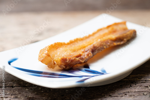 asian, belly, chinese, chop, cooking, crackling, crispy, cookery, deep, delicious, dinner, dish, fat, food, fried, epicure, lunch, meal, meat, oriental, pig, plate, pork meat, roast, roasted, sauce, skin, slice, tasty, white
