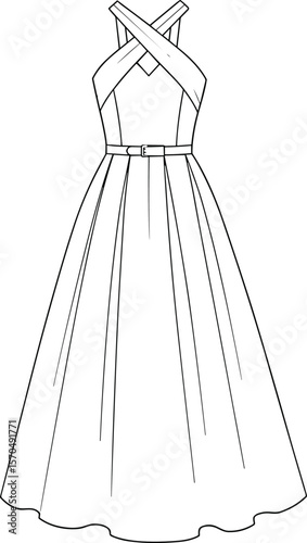 dress, fashion, vector, cad, vignetting, gown, maxi, criss-cross, flat, illustration, long, template, apparel