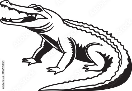Crocodile silhouette in vector art, perfect for kids' coloring pages, emphasizing fun and creativity in art