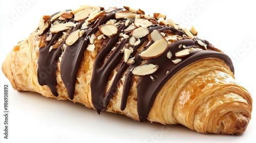 croissant, chocolate, sprinkled, almond, baked, white, background, delicious, pastry, bread, cake, isolated, fresh, epicure, brown, food, dessert, breakfast, meal, sweet, snack, bakery, tasty