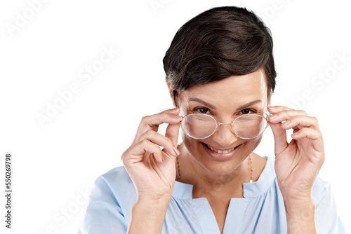 Cropped portrait of an attractive young woman posing in studio against an isolated transparent png background.