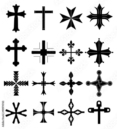 cross, white, vector, icon, isolated, set, black, design, collage, symbol, graphic, object, jesus christ, religion, god, background, belief, illustration, christian, shape, holy, collection, crucifix, catholic, faith, cross, church, jesus christ, art, decoration, religious, signs, silhouette, line, christianity, element, different, pray, spirituality, worship, variety
