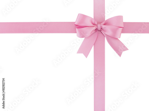 cross pastel pink ribbon bow wrapped corner packaging isolated on white