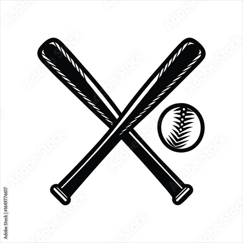Crossed Baseball Bats with Ball Silhouette Vector Icon