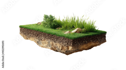 Cross-Section of Nature's Beauty: A captivating cross-section reveals the hidden layers of a vibrant natural ecosystem, showcasing the harmonious coexistence of soil, grass, rocks, and plant life.