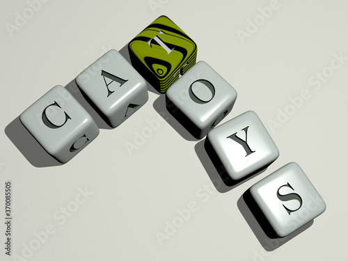 crosswords of CAT TOYS arranged by cubic letters on a mirror floor, concept meaning and presentation. animal and illustration