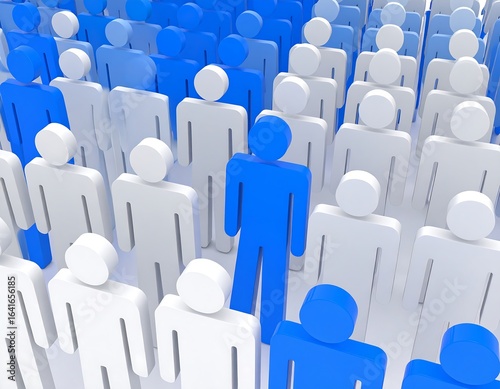 crowd, people, group, standing, different, unique, individual, contrast, standing out, diversity, society, many, blue, white, figure, symbolic, social, together, human, symbol, illustration, three-dimensional, visual, representation, abstract